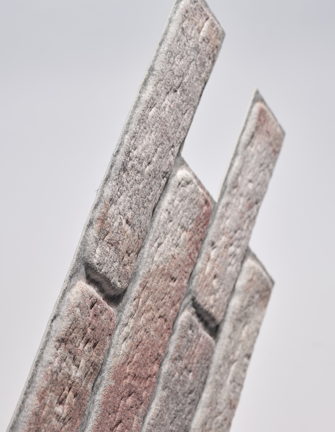 This unique panel is made from recycled PET bottles and features a flexible felt backing, making it not only environmentally friendly but also perfectly suited for various interior spaces. The soft material allows for smooth corners and a seamless finish. Thanks to its clever interlocking design, the panels fit together perfectly with no visible seams.