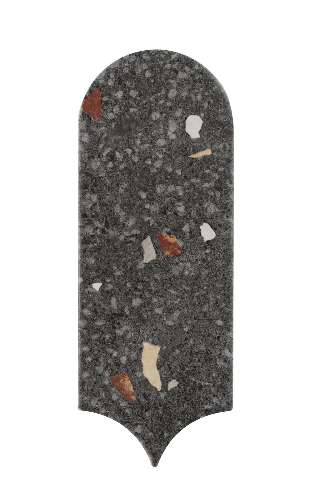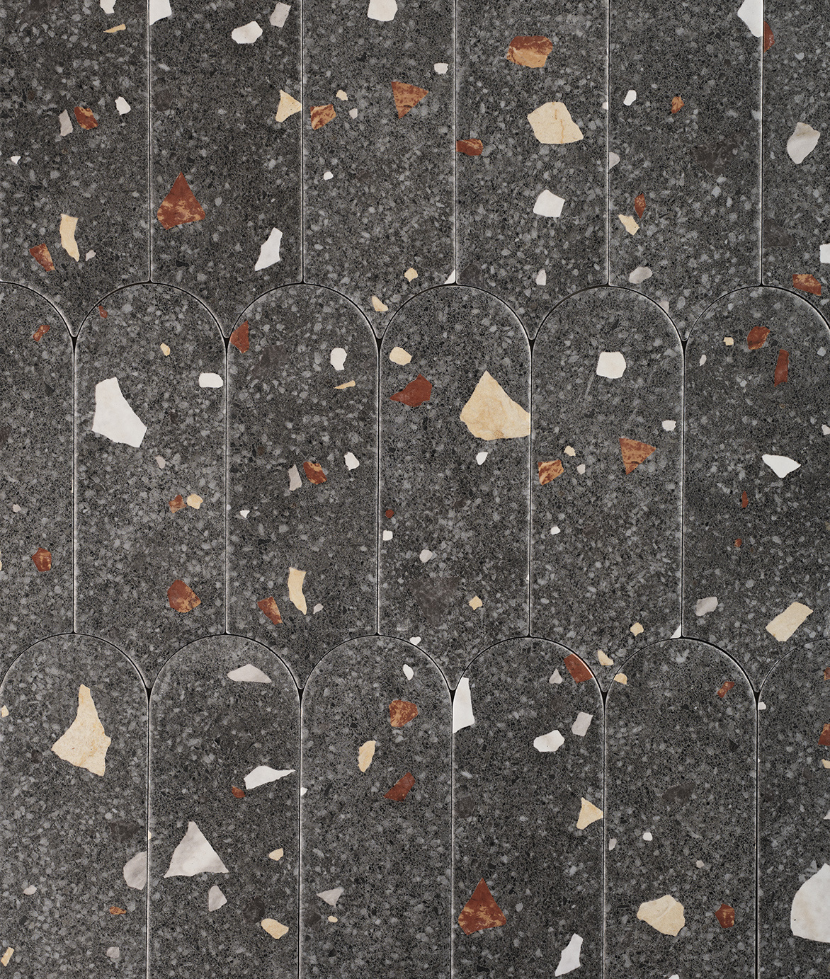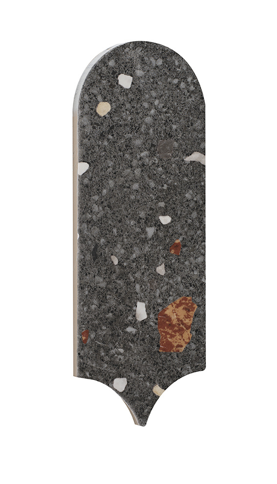 The UltraStrong Terrazzo Round – Anthracite is a refined indoor tile that blends the timeless charm of terrazzo with a modern twist. The deep anthracite colour provides the perfect backdrop for colourful terrazzo fragments in warm, natural tones. With 15 unique variants, a vibrant pattern emerges that gives your interior a stylish, playful character.