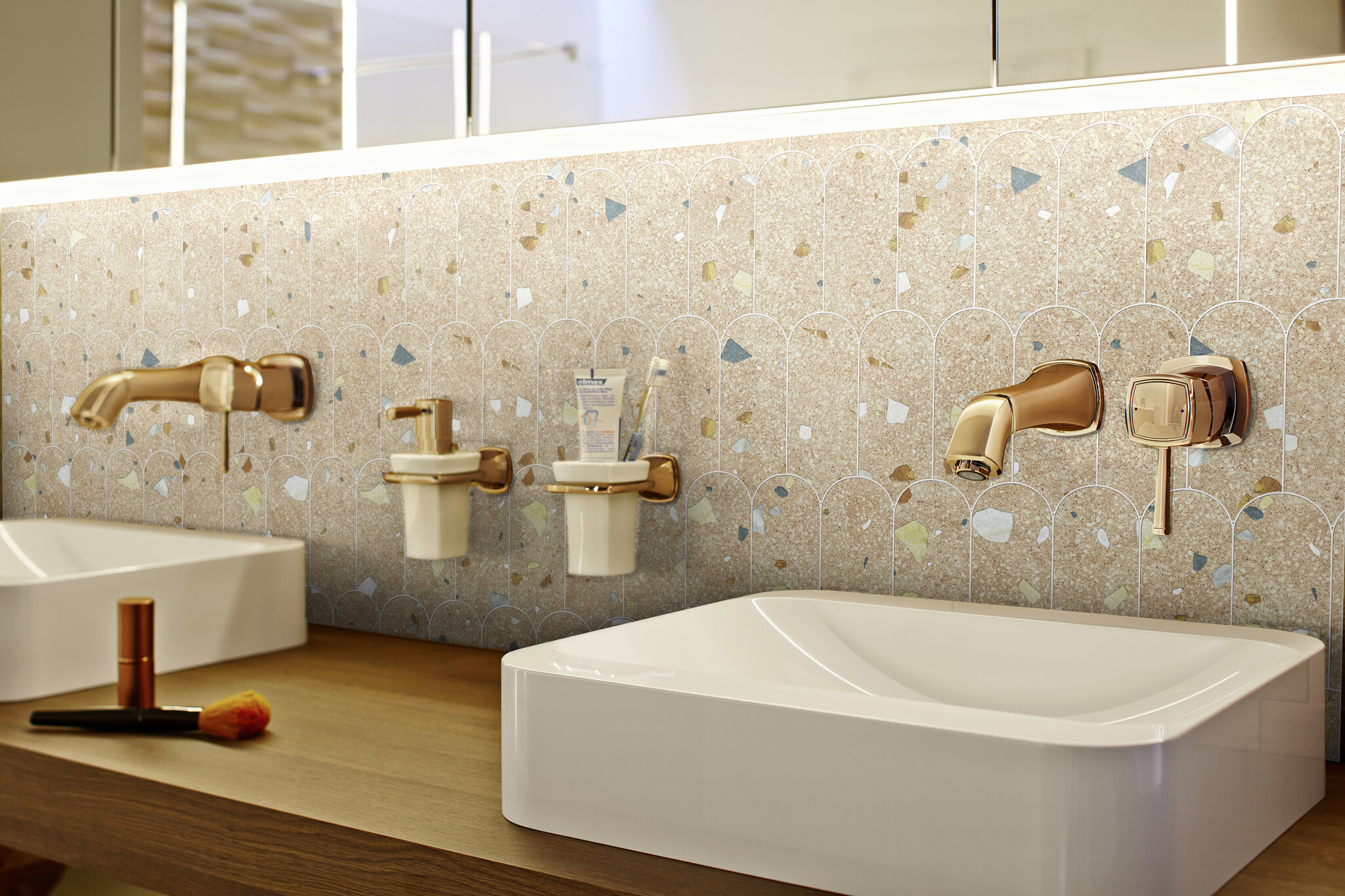 This beige version is ideal for use as a feature wall in bathrooms or a striking backsplash in kitchens. The rounded shape creates a playful and contemporary laying pattern that instantly adds atmosphere to any space. Easily combine this shade with other colours in the series. White and Anthracite for either a harmonious or bold, contrasting design.