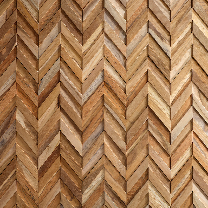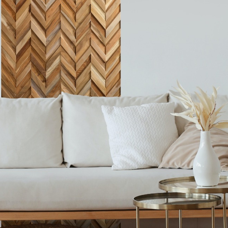 Natural materials such as wood are the trend in modern interior design. Natural elements and interior colors, organic shapes and textures represent an eco friendly, contemporary feeling in design and decor. A place of well being !UltraWood by RebelOfStyles natural Asian teak wood collection panels are made of selected asian teak wood. The 3D Chevron teak wood panels of Wallsupply are one of the finest decorative wood panels in the market today. This product brings the warmth of real natural wood in your interior home.