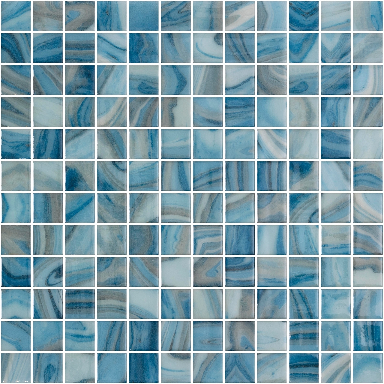 The Vanguard Tourmaline Blend mosaic tiles have a bold mix of deep blue, elegant gray, and bright turquoise. This combination creates a stunning visual effect. These classic-sized mosaic tiles add a unique and luxurious touch to any space. They are perfect for bathrooms, kitchens, pools, and decorative walls.